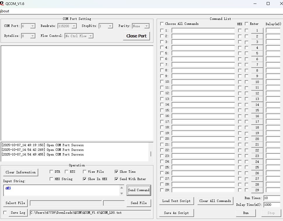 之后使用QCOM去打开上面形成的几个端口,去发送at指令,模组均未回复,不知道是不是驱动的问题,或者我该怎么操作?