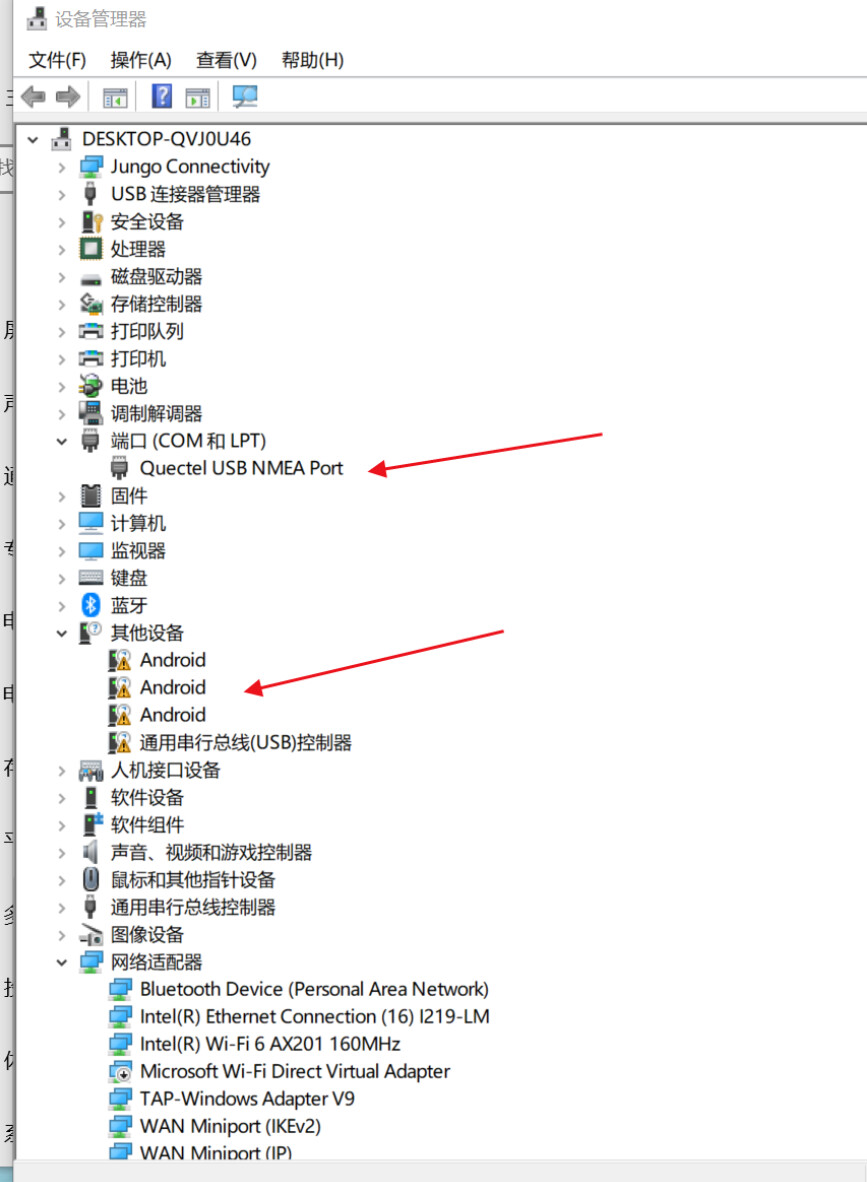 请教! 我在WIN10安装Quectel_Windows_USB_DriverQ_NDIS_V2.7_CN 驱动, 但是把EC20模块插到到电脑,设备列表出现这样的情况,是模块坏了吗?