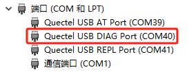Quectel USB AT Port:该端口用于发送AT指令。