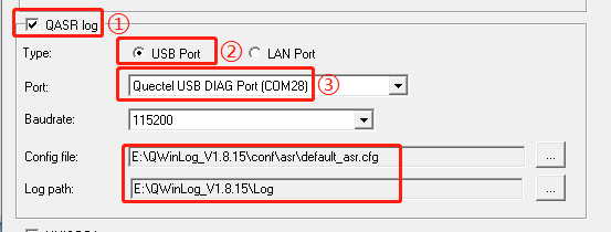 由于是使用QWinLog抓取ASR平台的log,因此只需要配置QWinLog工具界面中和ASR平台相关的参数即可,如下图所示:
