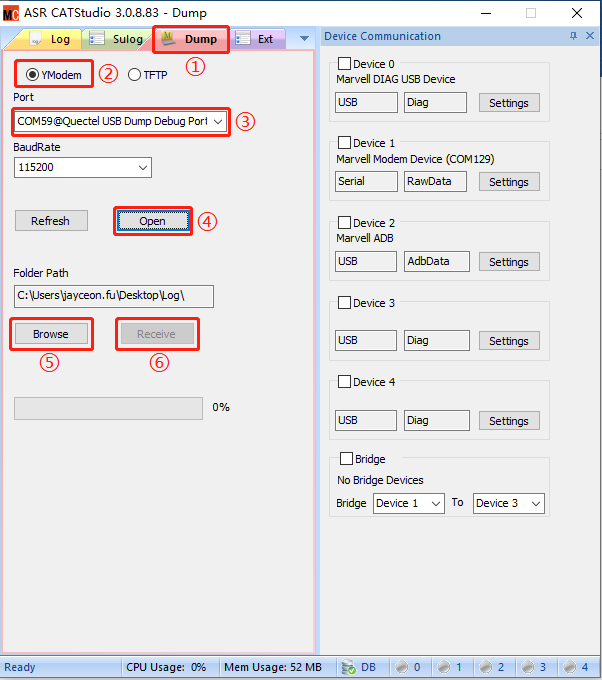 上图中红框标注的端口,就是接下来我们使用CATStudio抓取Log时需要使用的端口。