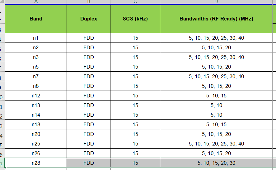 支持N28的30M带宽接入,请问您说的a频段是啥意思?