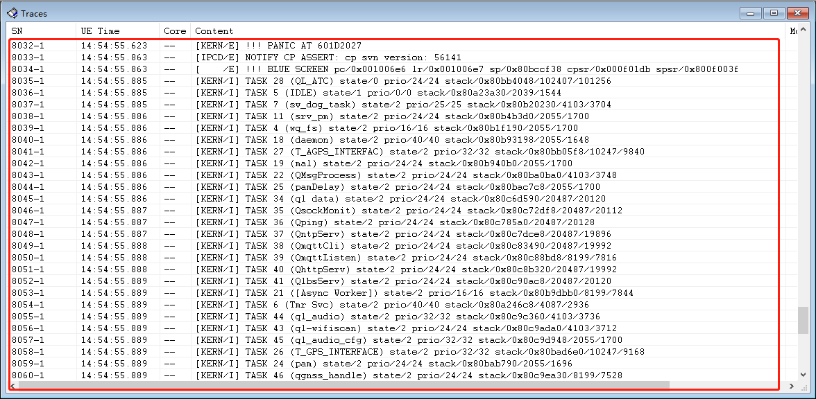 并且Traces窗口中会列出模组当前所有Task的基本信息: