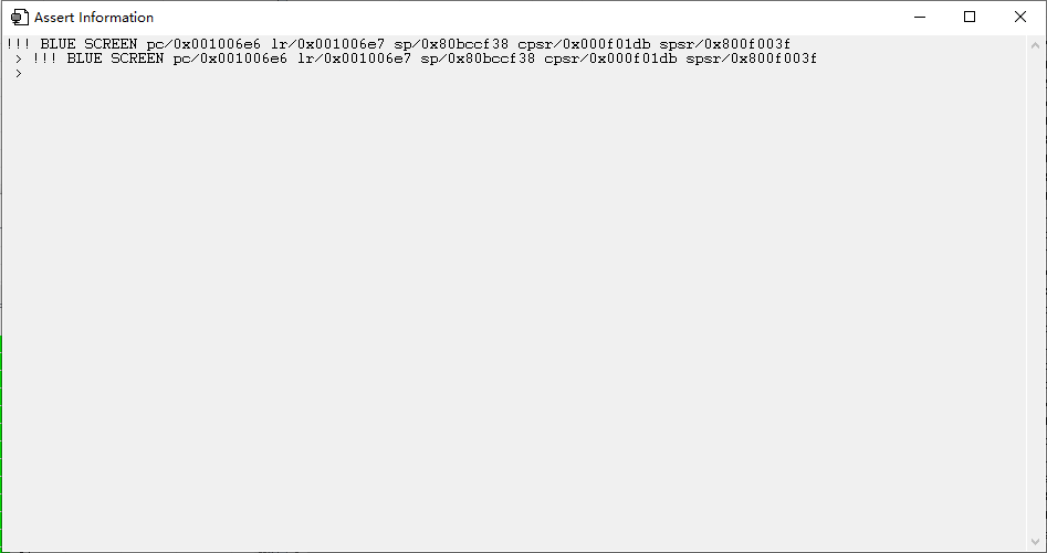 按照步骤1发送相关AT指令后,就可以去复现相关的dump问题,当模组出现dump问题时,ArmLogel工具会弹出如下所示的Assert Information窗口: