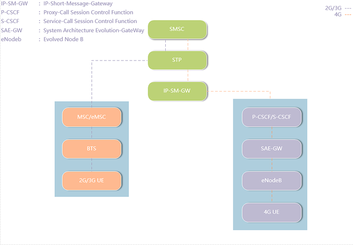 2G时代采用比较复杂的CS/PS域架构,SMS(短信)作为上个世纪的产物,一直寄居在2G的CS域架构下。2G/3G时代网络部署的短信网元为SMSC,主要用于短信的存储和转发,在各运营商中数量众多。