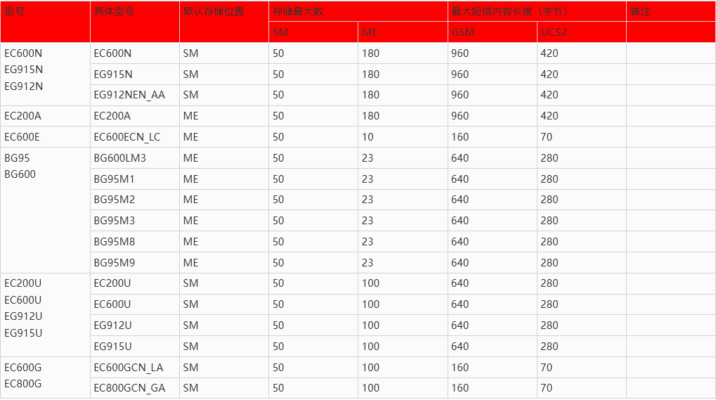 目前QuecPython模组仅支持SM或ME存储,二者选一。对于短信数量统计以及功能支持,默认储存情况见下表3-1。