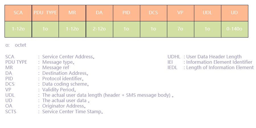 PDU类型对于SMS-SUBMIT,结构图如下: