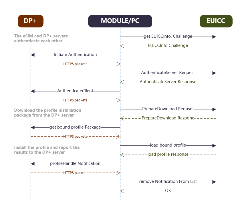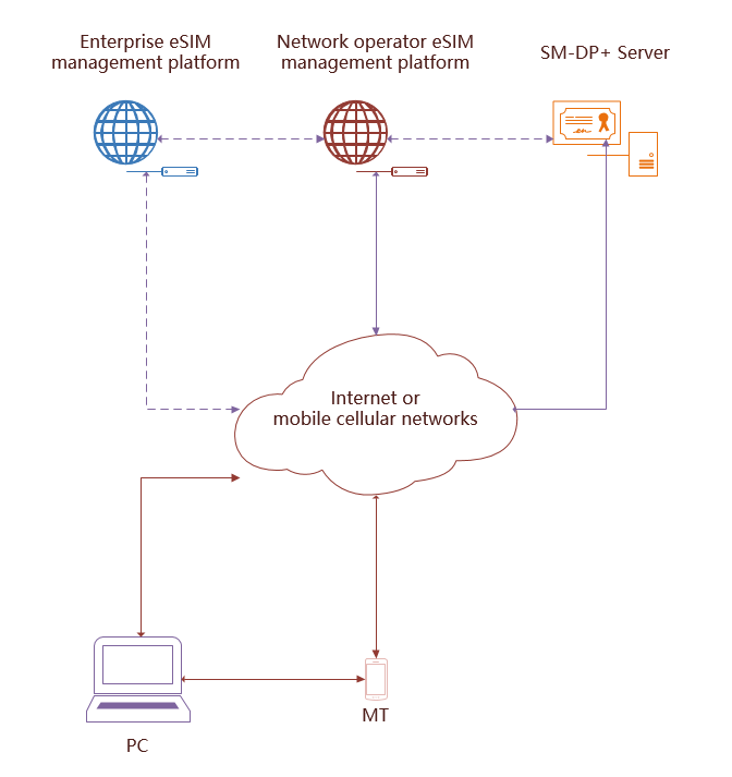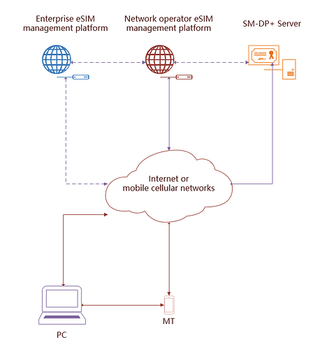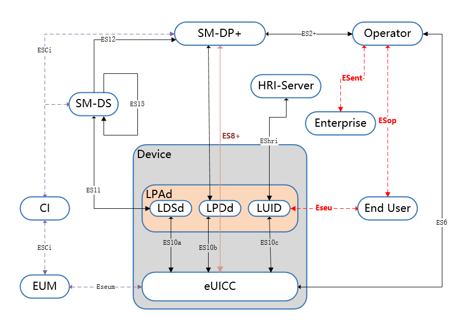 该解决方案围绕4个元素组织:SM-DP+(Subscription Manager-Data Preparation+)、SM-DS(Subscription Manager-Discovery Server)、LPA(Local Profile Assistant)和eUICC。