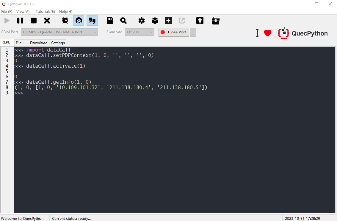 dataCall.getInfo(1, 0) # 第一路拨号信息查询