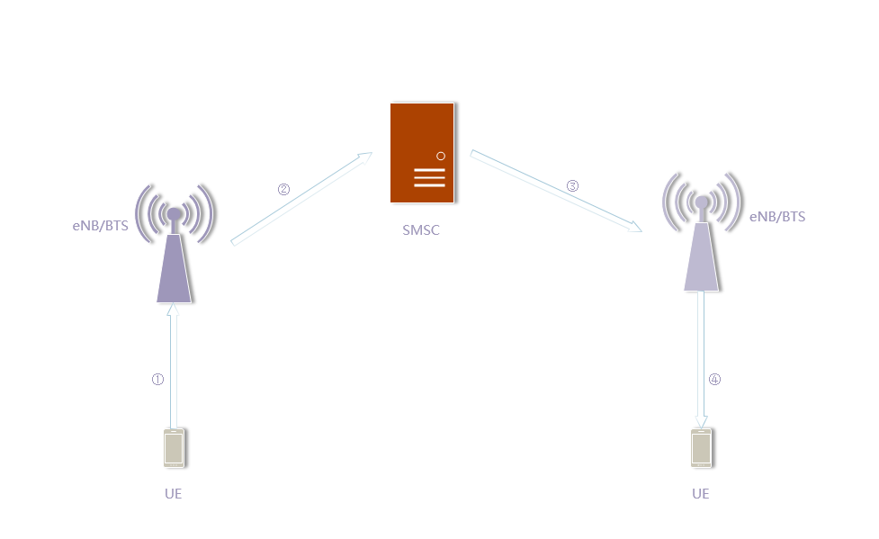 基站收到消息内容经过一系列网元处理将其转发到运营商短信服务中心。