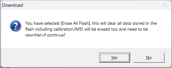 点击固件烧录界面中的 Flash 按钮 。在弹出的确认窗口中,点击 Yes 按钮 。