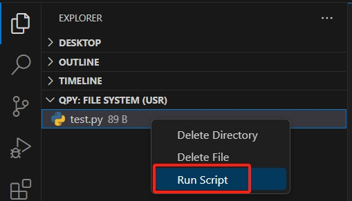 点击主侧边栏的 QuecPython 插件图标。