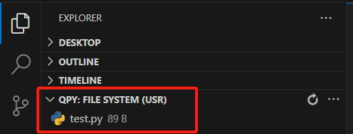 Explorer界面后,在最下面找到QPY: FILE SYSTEM (USR),它展示了模组文件系统/usr的目录树。