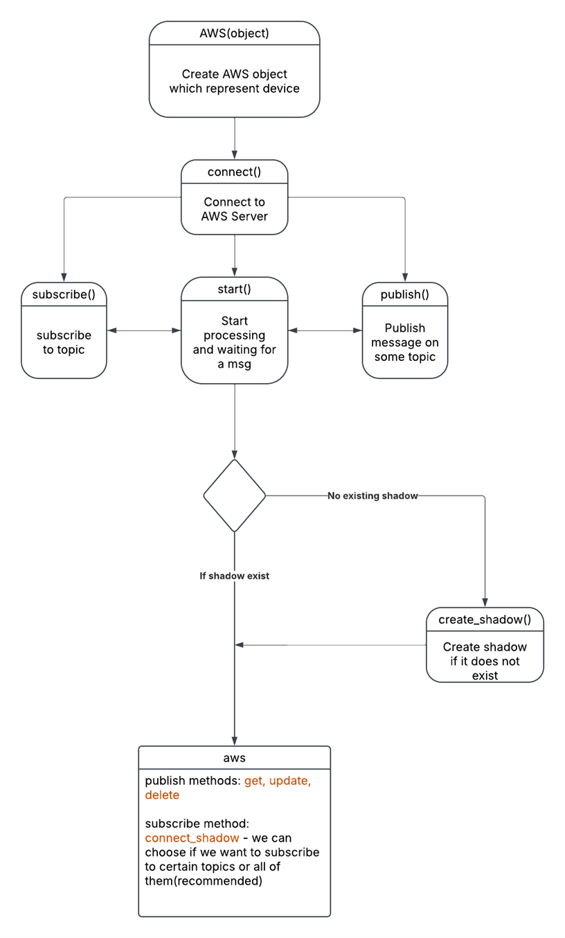 以下方法是关于AWS IoT设备对象的设计说明,用于表示连接到AWS IoT Core的设备及其影子(Shadow)操作。
