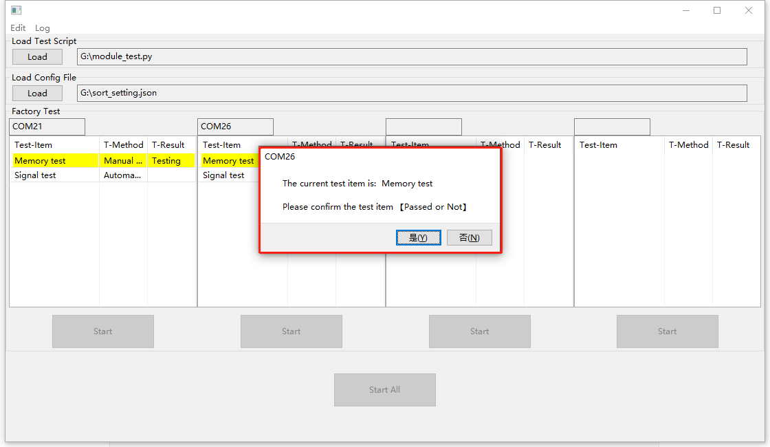 人工测试在当前项测试结束时,会弹出窗口,以便测试人员手动确认测试结果;工具会保存手动确认的结果。