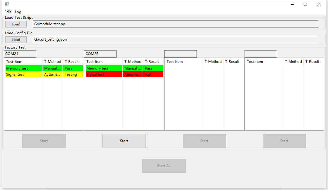点击 全部开始 按钮: 开始测试所有已接入的模块。