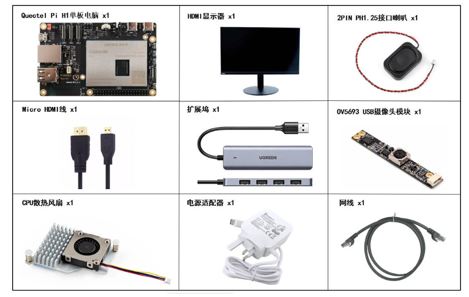 | Quectel Pi H1 智能主控板 | 1块 | Quectel Pi H1智能生态开发板 |