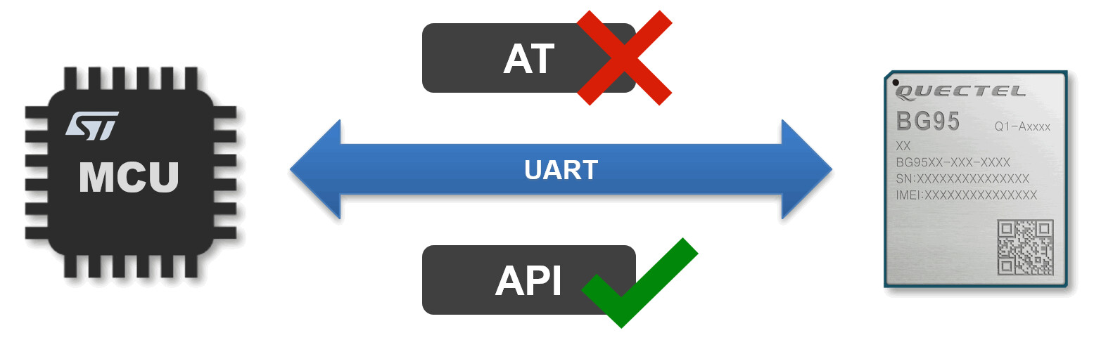 来实现各种功能,开发者只需专注于自己的业务逻辑,而无需处理MCU和模组之间复杂的AT数据交互,解决了传统AT命令开发方式的诸多痛点,从而使移远模组的开发更加简单、友好。