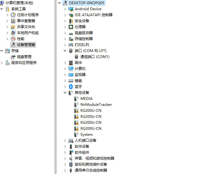 模块读取固件版本 Quectel RG200U-CN Revision: RG200UCNV3GAR03A04M2G 安装下载的Quectel_Windows_USB_Driver(U)_For_ECM_RNDIS驱动,电脑中依然是有未驱动设备