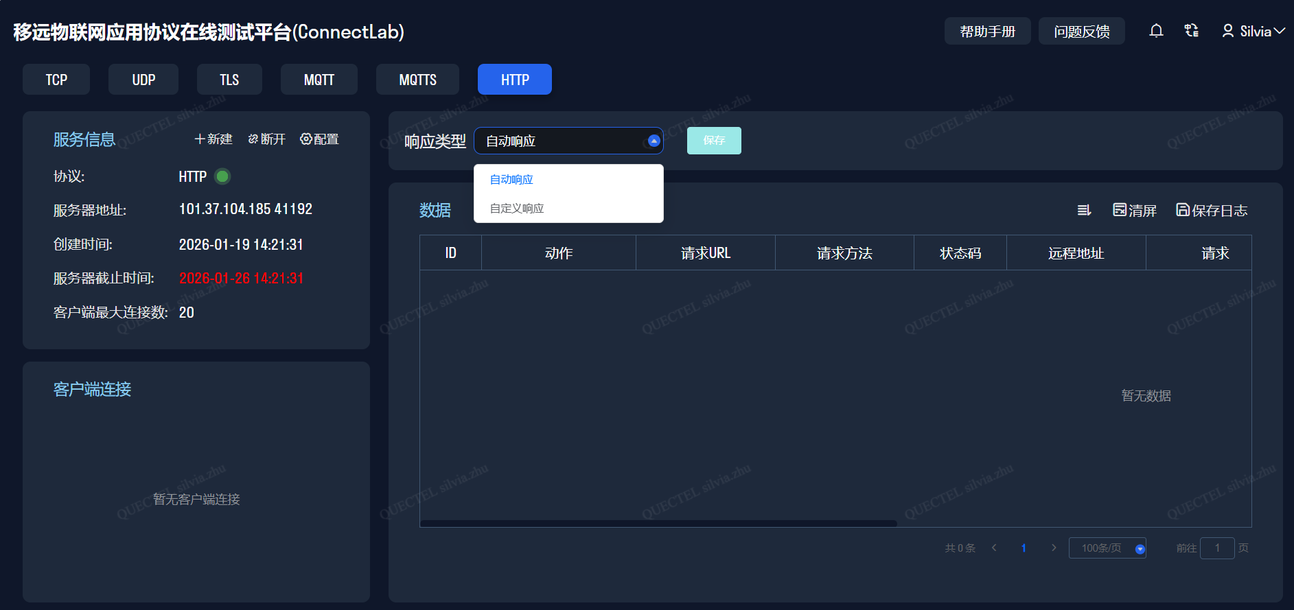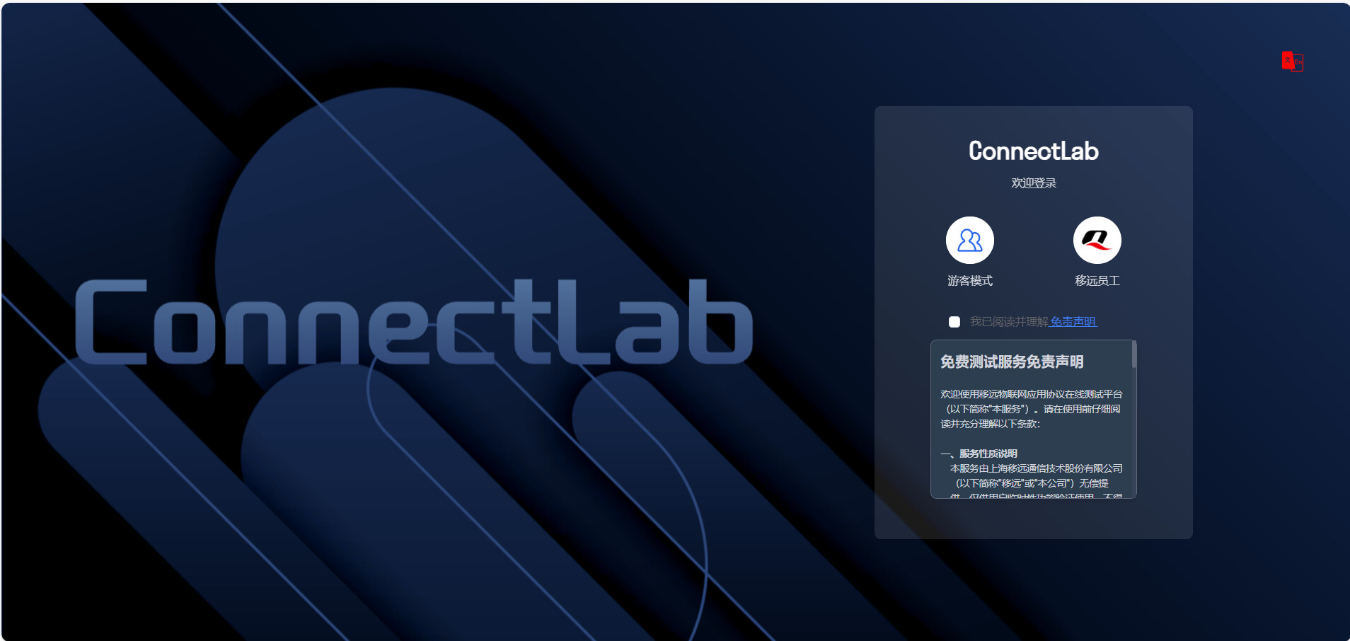 Quectel推出物联网应用协议在线测试平台 ConnectLab,提供客户游客模式和移远员工域账号登陆方式。支持Web化的协议服务器启动、数据交互等操作,提升物联网协议测试的便捷性、安全性以及竞争力。