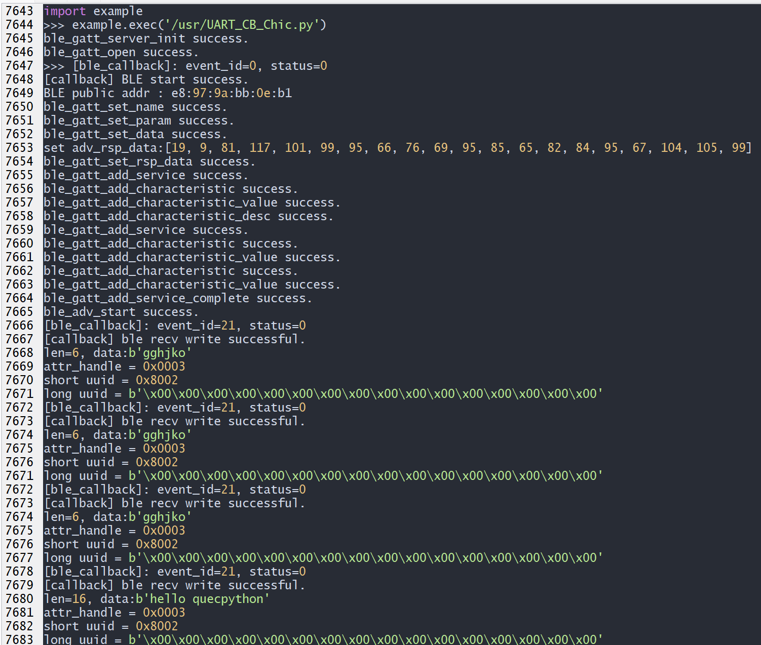 这份代码的本事可大着呢!执行之后,模组就能化身为 BLE 服务器端,乖乖接收手机的连接请求。不管是手机发送的普通数据,还是文件,模组都能稳稳接收并打印出来,是不是超厉害?就像给你的设备装上了 “顺风耳”,轻松听懂手机的 “指令”~