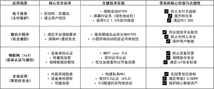为满足不同业务场景的安全与合规需求,TLS技术有着多样化的应用模式。下表通过四个典型场景,清晰对比了其核心应用与价值。