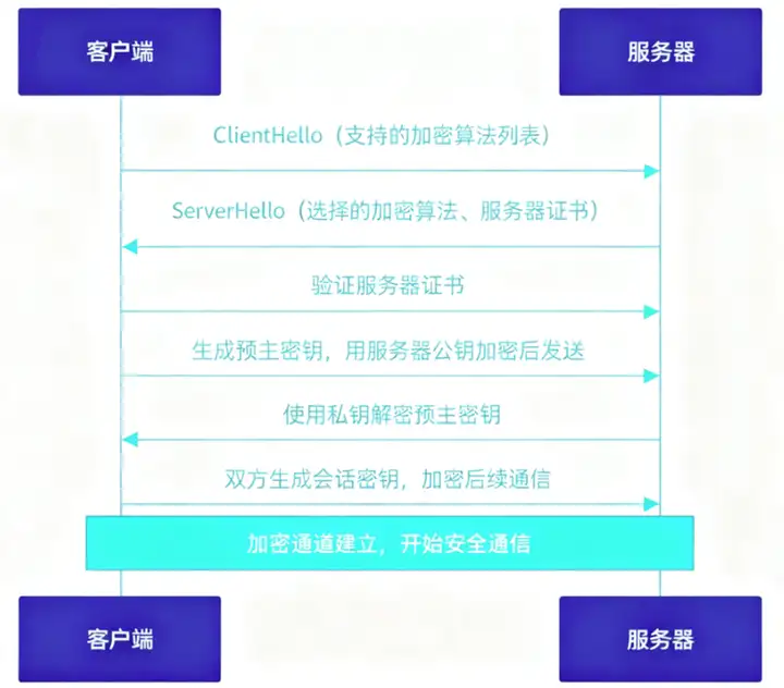 5. Finished:双方验证握手过程完整性,完成安全连接建立