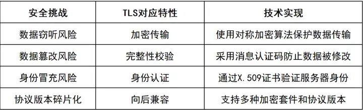 TLS的每一项核心特性都针对特定的安全挑战:
