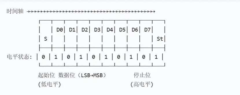 **● 灵活性:**数据位(5-8 位)、停止位(1-2 位)、校验位都能调,比如传 ASCII 字符常用 8 位数据位 + 1 位停止位 + 无校验。