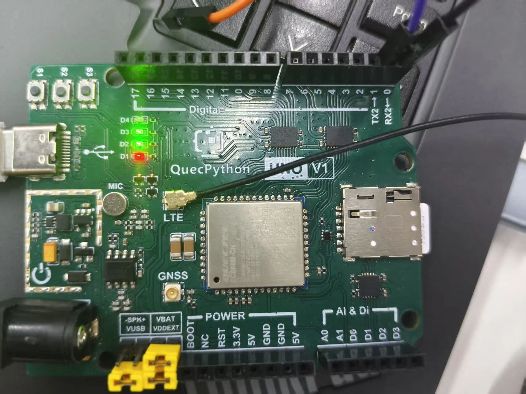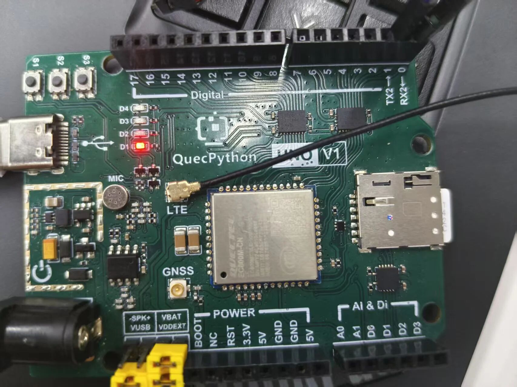 光说不练假把式,咱们用 EC800M 开发板做个小 demo:模组通过 UART2 和 PC 聊天,PC 发 “on” LED 亮,发 “off” LED 灭,超简单!