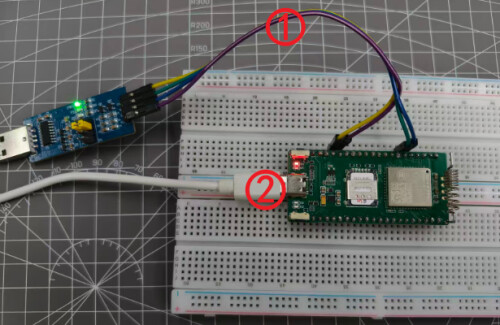 使用杜邦线连接usb-ttl模块和开发板的UART0,VCC->3V3 , GND->GND , TX-> RX0 , RX->TX0