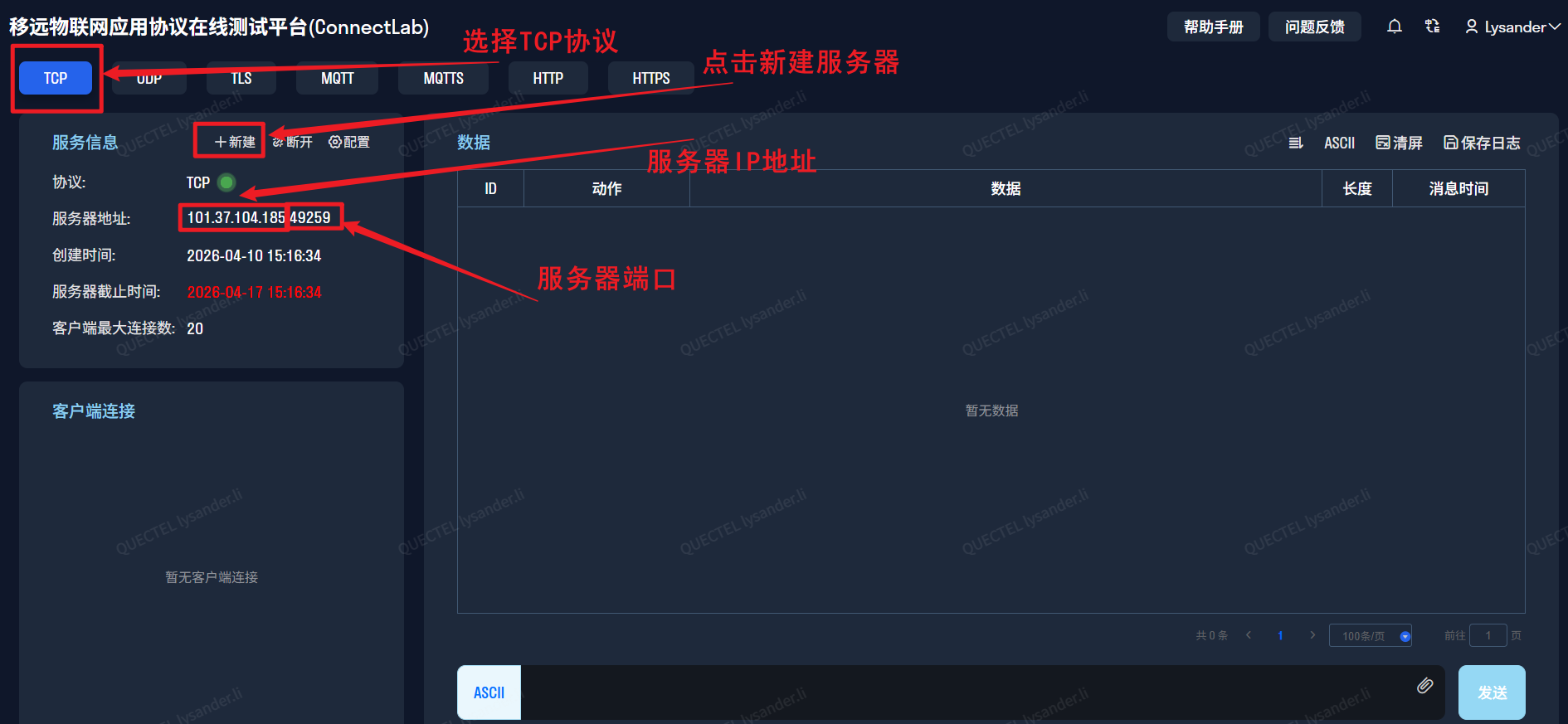 connectlab新建服务器,将真实的服务器地址和端口填入项目代码中
