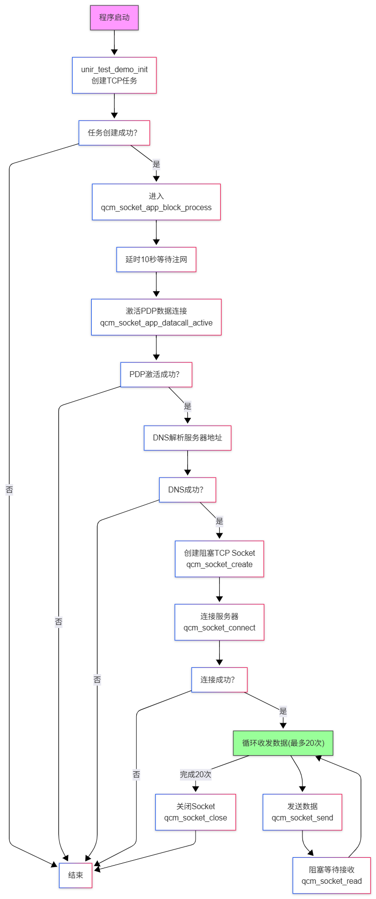 重要性:完整封装 TCP 客户端标准流程,是物联网设备 TCP 通信的核心参考。