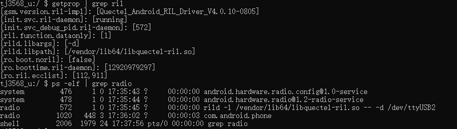 radio 573 1 0 22:18:13 ? 00:00:00 rild -l /vendor/lib64/libquectel-ril.so – -d /dev/ttyUSB2