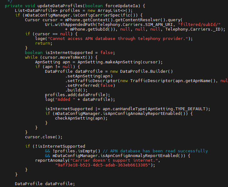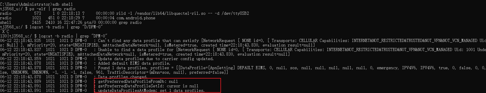 06-12 22:18:43.889 1021 1021 D DPM-0 : getPreferredDataProfileFromDb: null