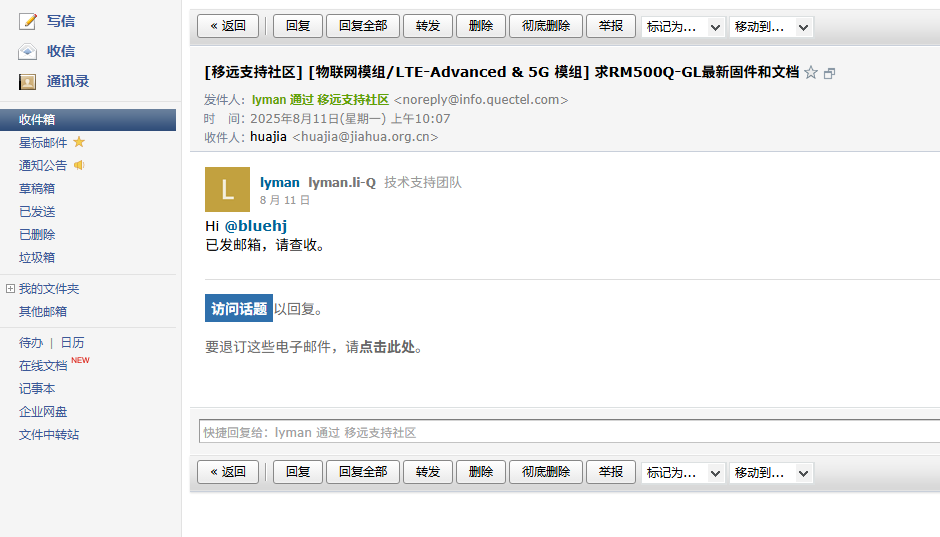 你好,仅仅收到已发信箱,请查收的新建。并未收到固件链接的邮件