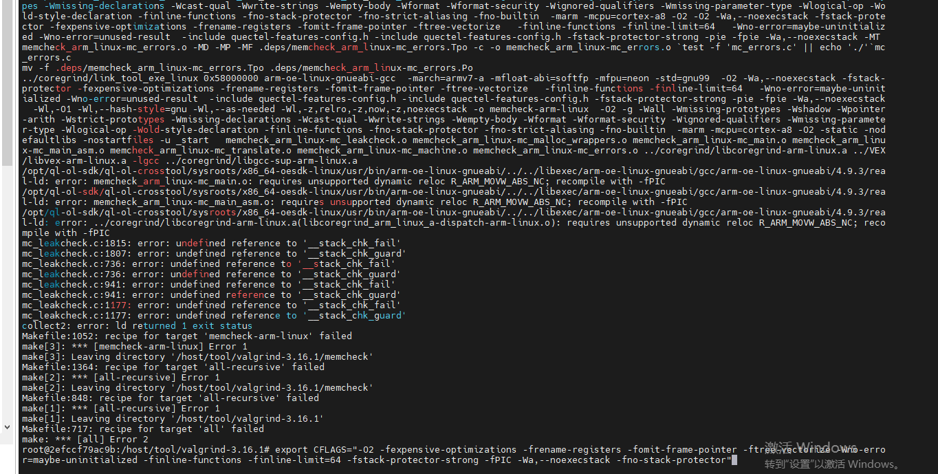 Makefile:1158: recipe for target ‘memcheck-arm-linux’ failed